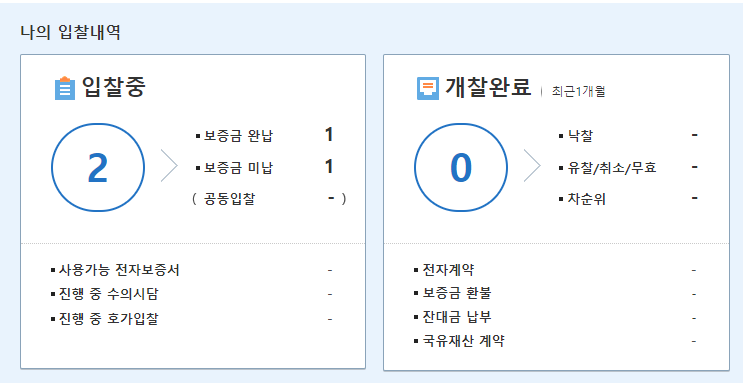 현재 상황을 [나의 입찰내역]에서 확인 할 수 있습니다.