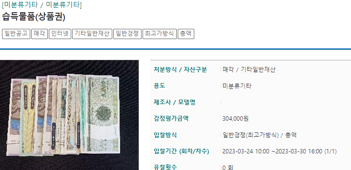 제가 처음으로 도전해 본건은 유실물 중에 상품권 이었는데요.